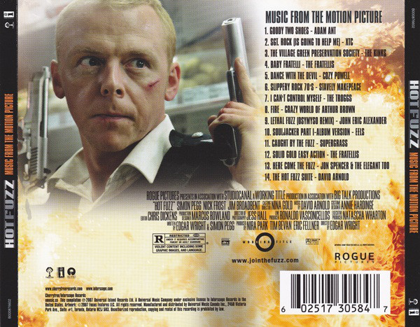 Executive Producers: Nick Angel and Edgar Wright Soundtrack Producer: Osymyso Executive Producer in Charge of Music at Universal Pictures: Kathy Nelson 01. Adam Ant – Goody Two Shoes 02. XTC – Sgt. Rock (Is Going To Help Me) 03. The Kinks – Village Green Preservation Society 04. The Fratellis – Baby Fratelli 05. Cozy Powell – Dance With The Devil 06. Stavely Makepeace – Sliperry Rock 70’s 07. The Troggs – I Can’t Control Myself 08. The Crazy World Of Arthur Brown – Fire 09. John Eric Alexander – Lethal Fuzz (Osymyso Remix) 10. Eels – Souljacker (Pt. 1) – Album Version 11. Supergrass – Caught By The Fuzz 12. The Fratellis – Solid Gold Easy Action 13. Jon Spencer and The Elegant Too – Here Come The Fuzz 14. David Arnold – The Hot Fuzz Suite |