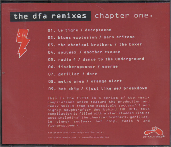 Promo edition of the US Astralworks release of the DFA remixes compilaton issued in regular album case with rear artwork only. Also issued as a promo CD with alternate artwork (in the UK) and on double vinyl.