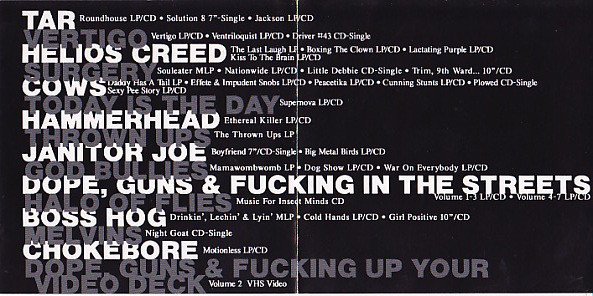 | 01. Chokebore – Coat 02. Cows – Sugar Torch 03. Boss Hog – Some Sara 04. Guzzard – Tex 05. Surgery – Kickin Around 06. Helios Creed – The Federation 07. Janitor Joe – Boys In Blue 08. Today Is The Day – I Bent Scared 09. Hammerhead – Tuffskins 10. Vertigo – King Of Terror 11. X – I Don’t Wanna Go Out 12. Helmet – Born Annoying |