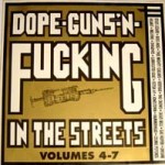 Compilation of Volumes 4 – 7 of the Ampetamine Reptile 7″ singles series. The Boss Hog track was originally featured on Dope Guns And Fucking In The Streets Vol. 4 (7″, US) which was limited to 2000 copies in total with 250 being on red vinyl. In 2010 Amphetamine Reptile released Volume 12 which included previously unreleased Boss Hog track Stain. Rear sleeve incorrectly states that the Gas Huffer track as Bad Times whereas label lists Before I Kill Again. |