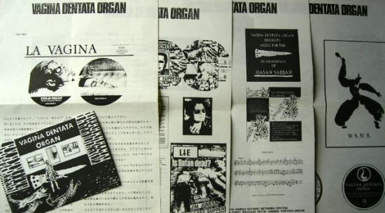 This Japanese magazine consisted of many different inserts stored together in a folder/cover. 7″ Single: *Vagina Dentata Organ: Jordy Valls Interview by Marco Franco (originally appeared in ADN magazine Italy) w/4 sheets of posters/flyers (Cold Meat, The Triumph of the Flesh with Pangan Drum of Calanada and Music for the Hashishins). *Whitehouse: Psychopathia sexualis, Psychic TV, Catalan (Size: 300mm × 210mm) *Richard Kern: Interview by Supernatural Organization from end of 1987 w/Interview booklet (12 pages) and Mini poster (Size: 295mm × 415mm). *Pussy Galore: Interview by Supernatural Organization (6 pages). *William Burroughs: Interview by Tom H. and Paul Dickerson (4 pages). *Book/Album Reviews: Phillip K. Dick, Brion Gysin, UT, Death in June, Muslimgauze, Women in Prison Films, more… *Separate 24 page booklet in English (Size: 180mm × 130mm). Issue Six of this magazine featured the Pussy Galore / Black Snakes 7″ single. |