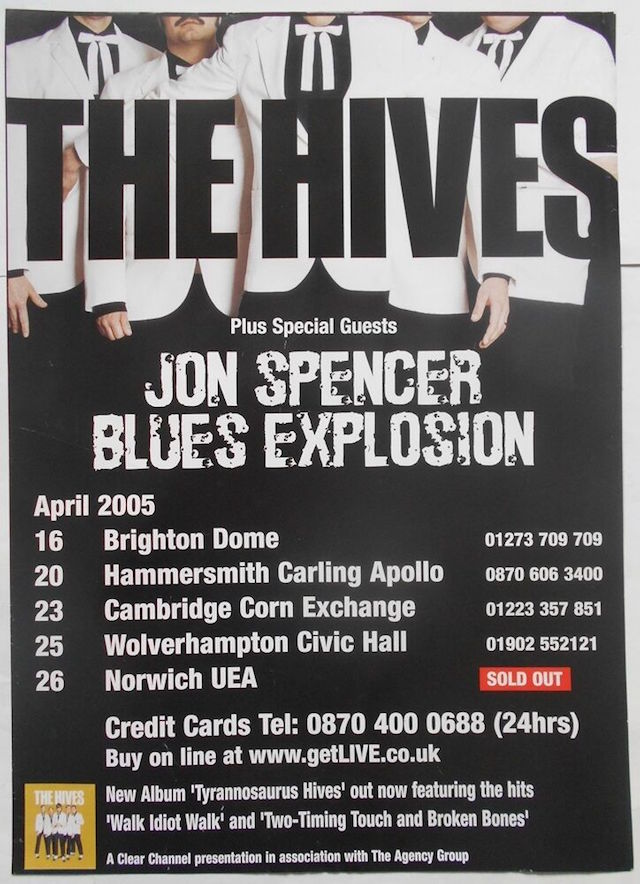 Blues Explosion set at UEA LCR, Norwich, UK with The Hives (headlining) and The D4 on 26 April 2005.