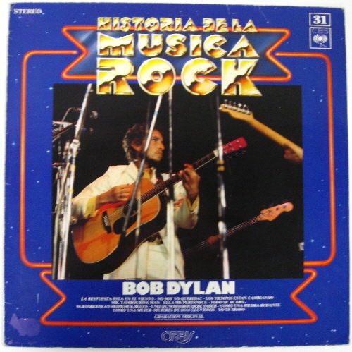 | The Pussy Galore album Historia De La Musica Rock imitates the title and design of the ‘Historia De La Musica Rock’ series of albums and the Pussy Galore cover image would appear to reference the photo used on the Bob Dylan release as there are microphone stands in the foreground of both sleeves. | |