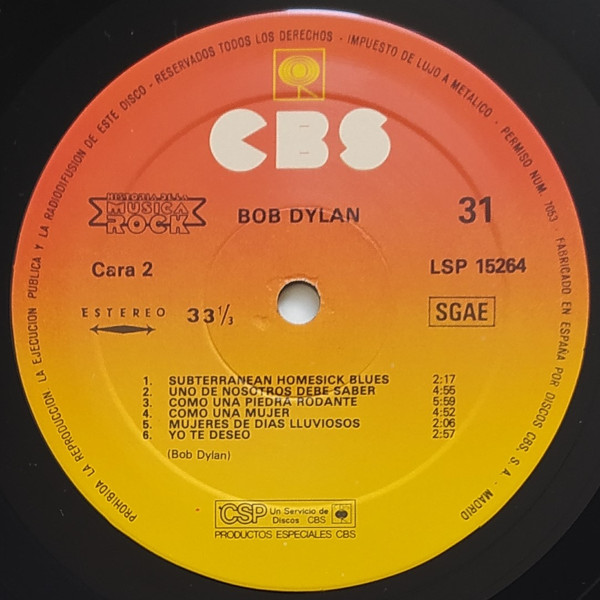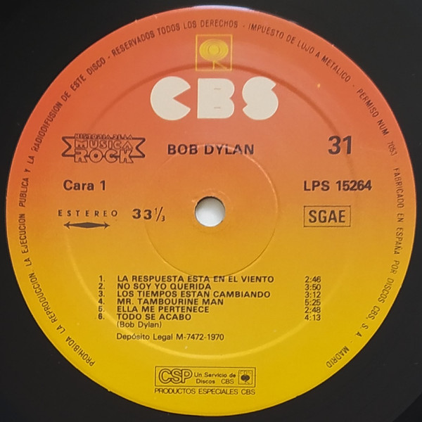 | A1. Blowin’ In The Wind A2. It Ain’t Me Babe A3. The Times They Are A-Changin’ A4. Mr. Tambourine Man A5. She Belongs To Me A6. It’s All Over Now Baby Blue B1. Subterranean Homesick Blues |