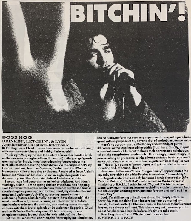 | Unnecessarily negative review of Drinkin’, Lechin’ & Lyin’ by Boss Hog from Melody Maker.