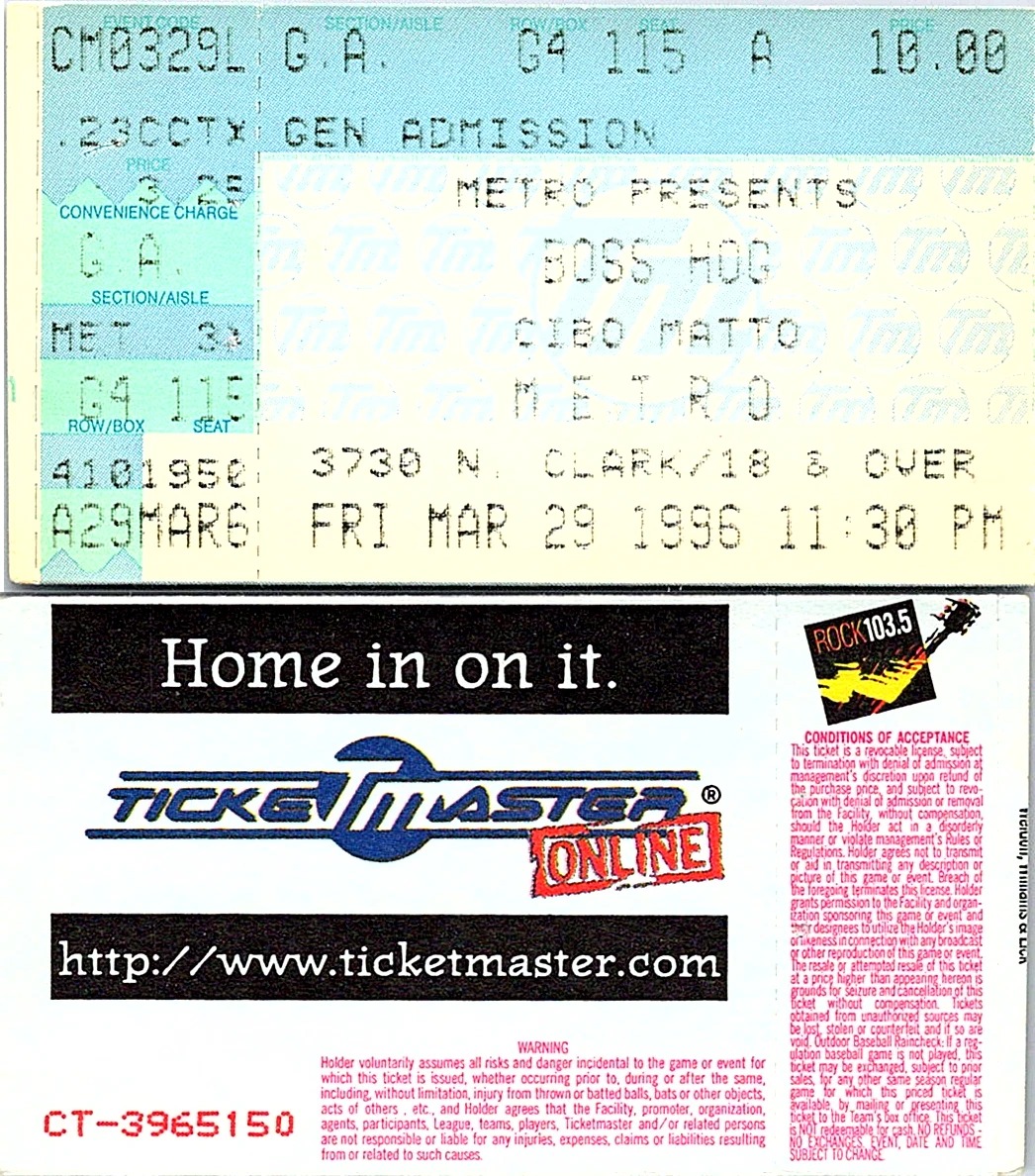 Boss Hog show at The Metro, 3730 N. Clark, Chicago, IL, US with Cibo Matto on 29 March 1996.