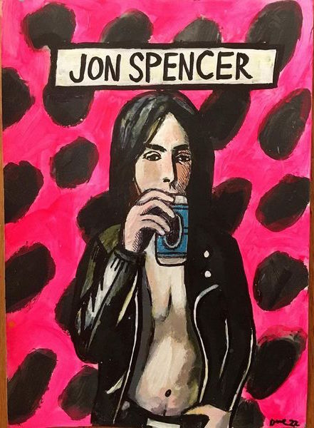 | Painting of Jon Spencer which appears to be based on the Pussy Galore Dial ‘M’ For Motherfucker promo photos by Michael Lavine. |