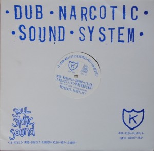 | 12″ EP by Dub Narcotic Sound System issued in die-cut card sleeve with plain white paper inner-sleeve featuring Typecast Sanction, a variation on the new segment Dub Narcotic added to its remix of the Blues Explosion’s Soul Typecast (originally released by the Jon Spencer Blues Explosion on the 1993 album Extra Width with the Dub Narcotic Sound System version appearing on Experimental Remixes in 1995).