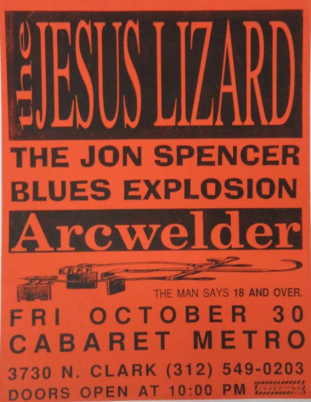 The Jon Spencer Blues Explosion show at Cabaret Metro, 3730 N. Clark, Chicago, US with Jesus Lizard (headlining) and Arcwelder on 30 October 1992.