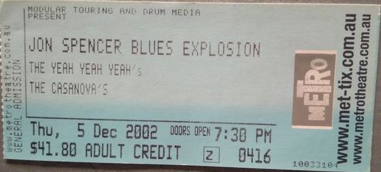 The Jon Spencer Blues Explosion show at Metro, Sydney, Australia with the Yeah Yeah Yeahs and The Casanovas (5/12 only) on 4 / 5 December 2002.