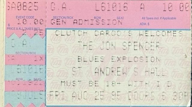 The Jon Spencer Blues Explosion show at St. Andrews Hall, Detroit, MI, US with R.L. Burnside on 25 August 1995.