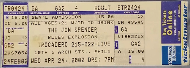 The Jon Spencer Blues Explosion show at Trocadero Theatre, Philadelphia, PA, US with Speedball Baby on 24 April 2002.