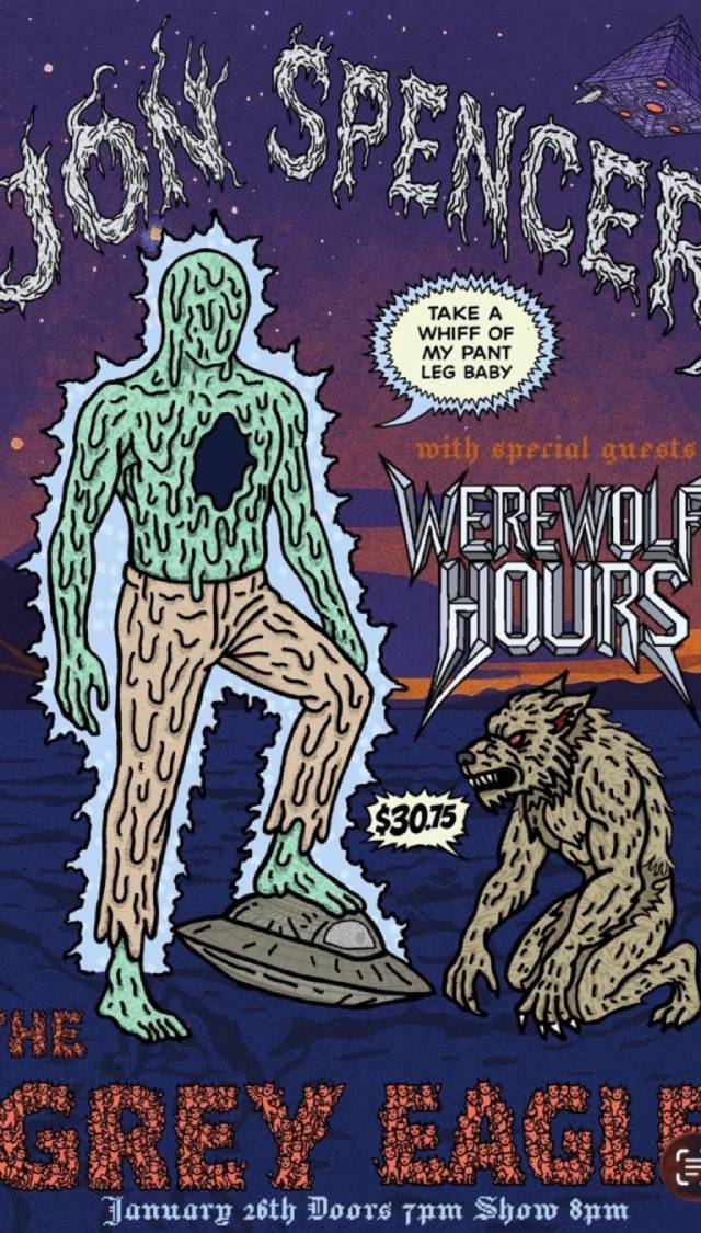 Jon Spencer show at The Grey Eagle, 185 Clingman Ave, Asheville, NC, US with Werewolf Hours on 26 January 2026.