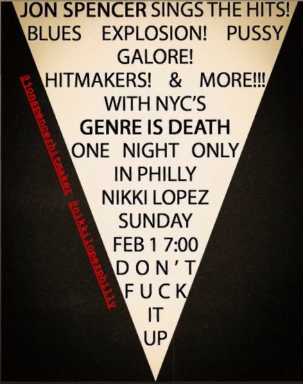 Tickets: https://www.ticketweb.com/event/jon-spencer-nikki-lopez-philly-tickets/14092304