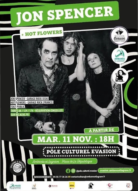 “Mardi j’étais avec Relâche au Pôle Culturel Évasion à Ambares, l’occasion du retour de Jon Spencer sur Bordeaux. J’attendais cette date avec impatience, et j’avoue que je ne suis jamais déçue avec JS. C’est le groupe bordelais Hot Flowers qui a ouvert le bal en puissance. On vous partage quelques images de la soirée.
