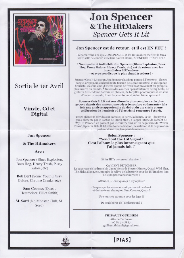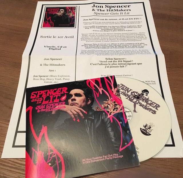 Jon Spencer & the HITmakers – Spencer Gets It Lit issued as a CDR in card sleeve with promo sheet.