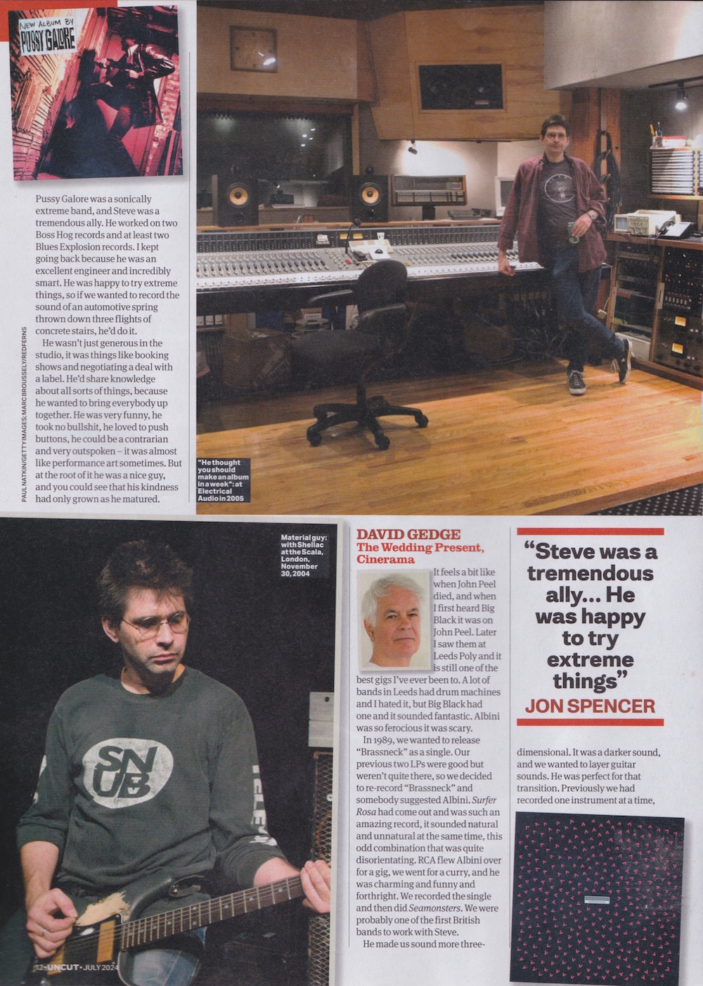 Pussy Galore was a sonically extreme band, and Steve was a tremendous ally. He worked on two Boss Hog records and at least two Blues Explosion records. I kept going back because he was an excellent engineer and incredibly smart. He was happy to try extreme things, so if we wanted to record the sound of an automotive spring thrown down three flights of concrete stairs, he’d do it.