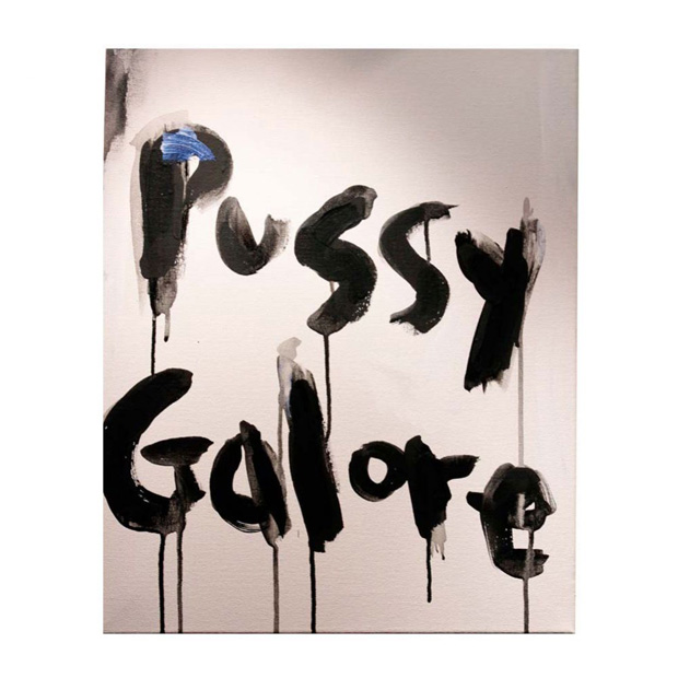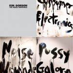 “In this collection of recent paintings by artist and musician Kim Gordon, dripping texts of underground noise-music artist sobriquets known as the Noise Paintings meditate on the transformative aspects of identity vs. ownership. Artist and writer John Miller describes the Noise Paintings as an esoteric experience and an approach deliberately offhand painterly gesture against feminist and conceptual legacies … somewhere between Gerhard Richter’s and Merlin Carpenter’s… displacing pictures with definitions.” – ecstaticpeacelibrary.com |