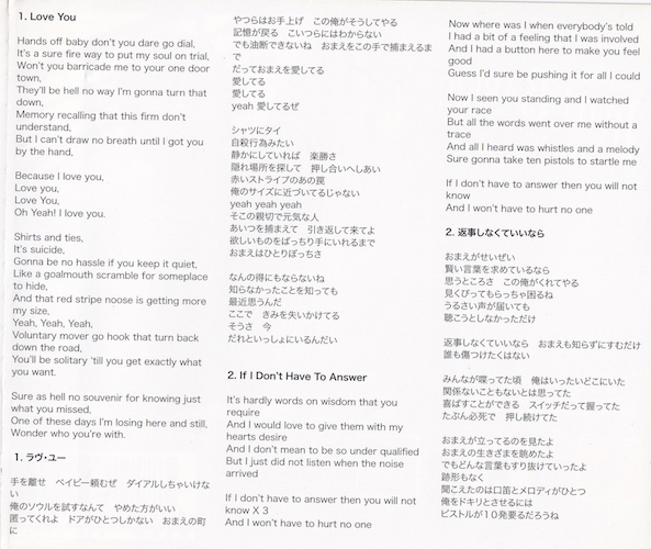 | 01. Love You 02. If I Don’t Have To Answer 03. I Wonder Whether (demo) |