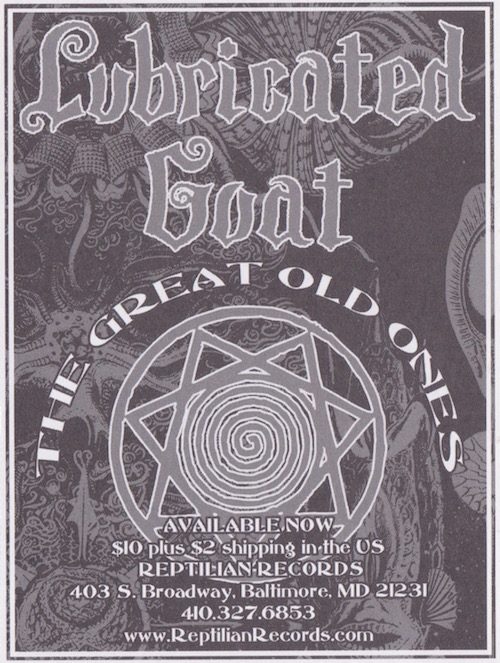 | Original CD release of The Great Old Ones by Lubricated Goat, reissued in 2022 on splatter vinyl.