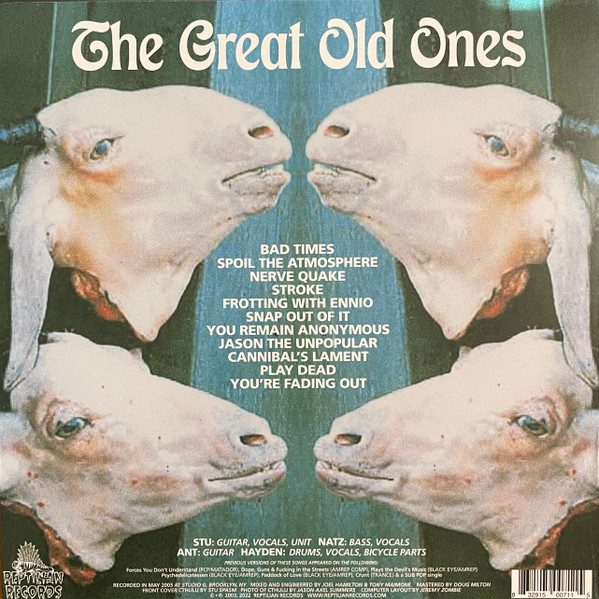 | 2022 vinyl reissue of The Great Old Ones by Lubricated Goat on Blue Translucent With Green Splatter vinyl limited to 150 copies, originally released as a CD-only album in 2003.