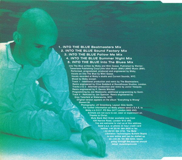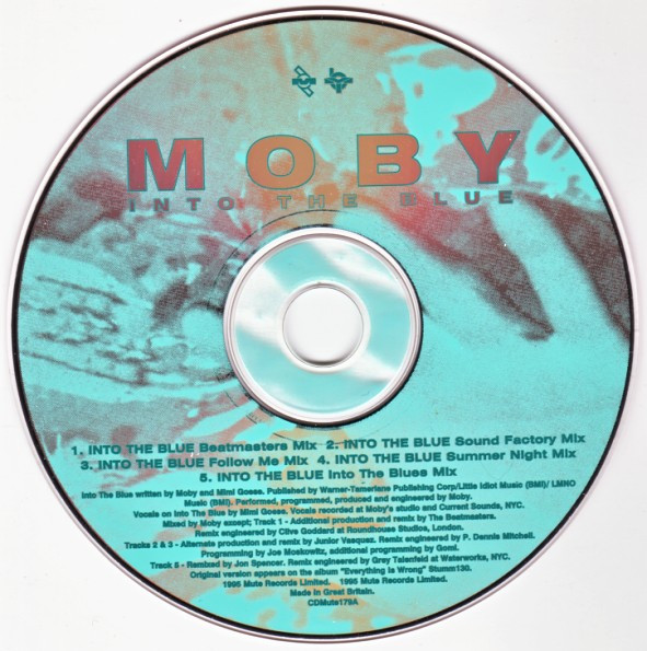 01. Into The Blue (Beatmasters Mix) Writers: Moby and Mimi Goese Published: Warner-Tamerlane Publishing Corp./Little Idiot Music (BMI)/LMNO Music (BMI) Performed/Programmed/Produced/Engineered: Moby Vocals: Mimi Goese Vocals recorded at Moby’s Studio and Current Studios, NYC Mixed: Moby Additional Production: Beatmasters Engineered: Cliver Goddard at Roundhouse Studios, London. 02. Into The Blue (Sound Factory Mix) 03. Into The Blue (Follow Me Mix) 04. Into The Blue (Summer Night Mix) 05. Into The Blue (Into The Blues Mix) |