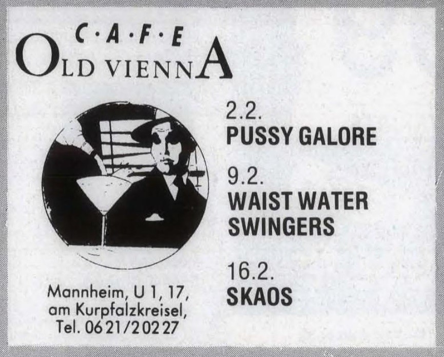 Pussy Galore show at Café Old Vienna, Mannheim, Germany on 2 February 1988.