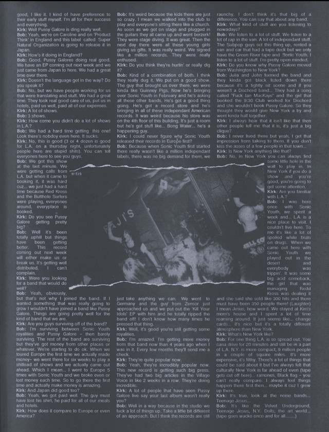 Bob: Good. Pussy Galore’s doing real good. We have an EP coming out next week and we just came from Japan to here. We had a great time over there.