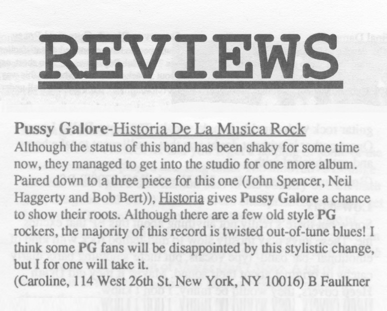 | Review of the Pussy Galore album Historia De La Musica Rock. |