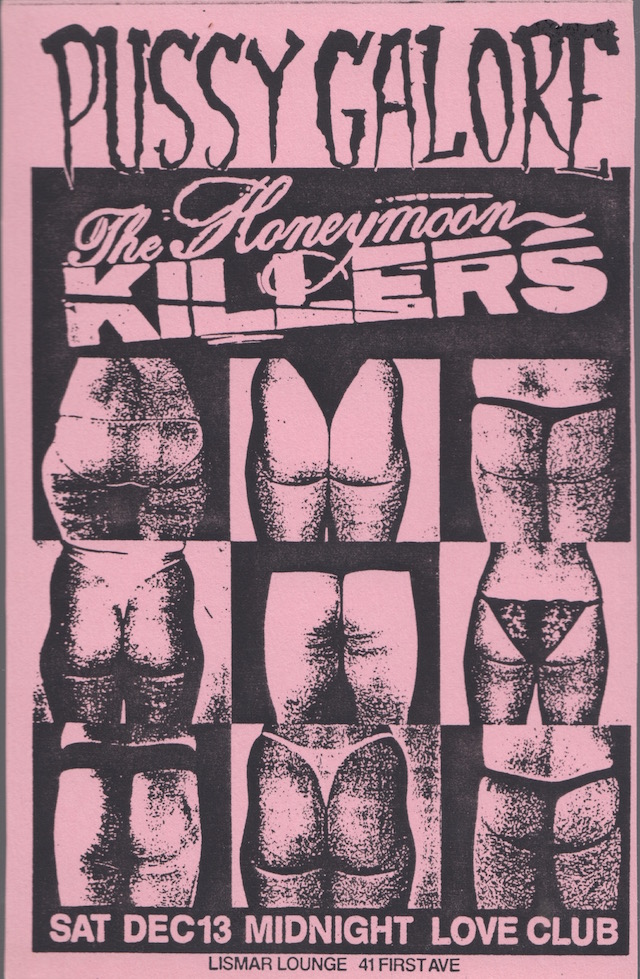 Pussy Galore show at Midnight Love Club, Lismar Lounge, 41 First Ave., New York City, NY, US with Honeymoon Killers on 13 December 1986.