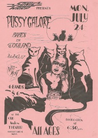The Frog 2000 blog has recently posted bootlegs of Pussy Galore shows at Old Avalon Theater, Minneapolis, US (24 July 1989), Joel Aid / The Channel, Boston, US (5 August 1987) and Asylum, New York City, US (26 July 1987).