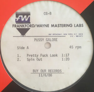 | © 1986 Pussy Galore Recorded: Wharton Tiers 10.SEPTEMBER.1986 1.1. Pretty Fuck Look 1.2. Spin Out 2.1. Walk 2.2. Get Out 2.3. No Count (“Live! This is a cover”) |