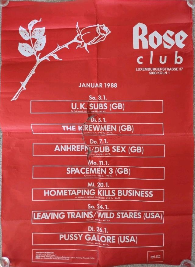 Pussy Galore show at Rose Club, Luxemburger Strasse 37, 5000 Köln 1, Germany on 26 January 1988.