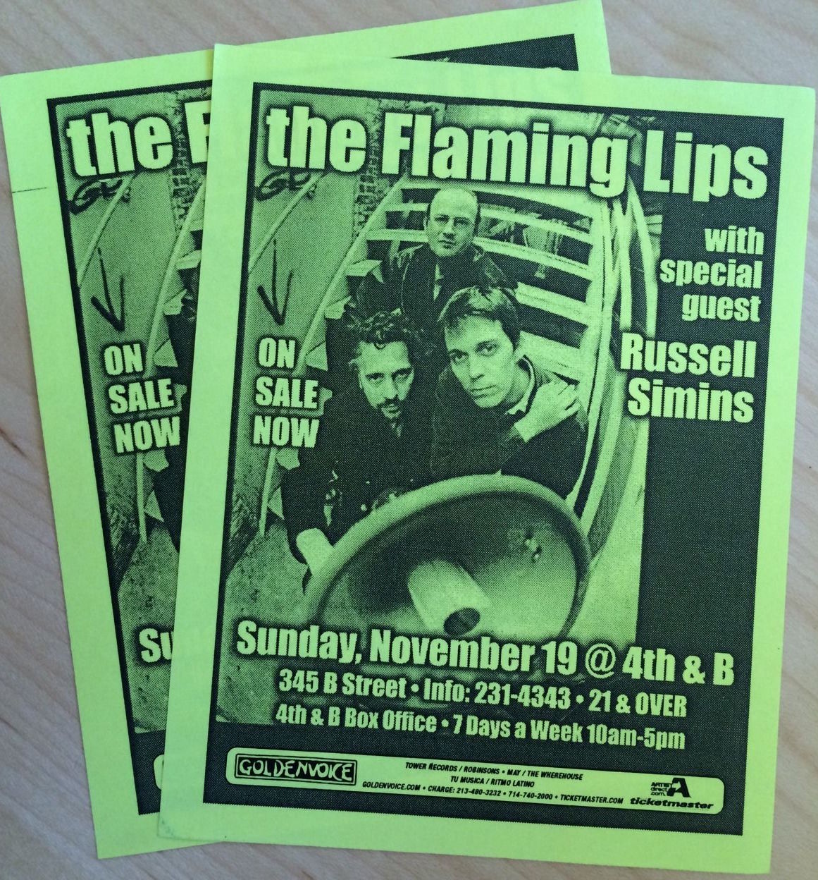 Russell Simins show at 4th & B., 345 B Street, San Diego, CA 92101, US with The Flaming Lips (headline) on 19 November 2000.