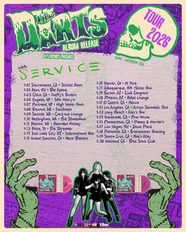 S-E-R-V-I-C-E show at Duffy’s Tavern, Chico, CA, US with The Darts on 3 May 2026.