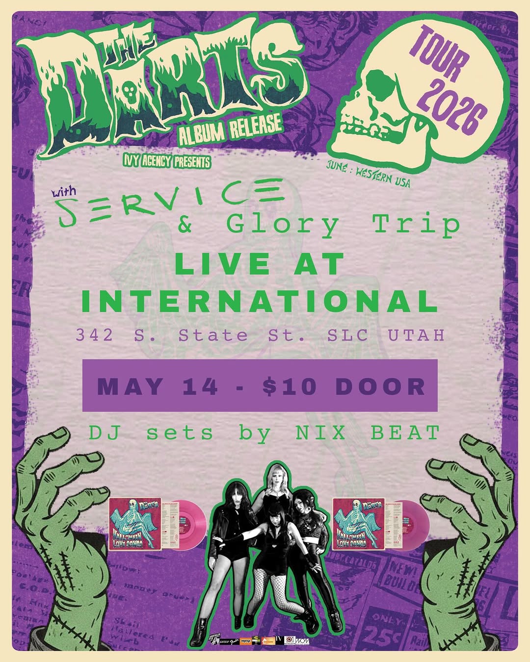 S-E-R-V-I-C-E show at International Bar, Salt Lake City, UT, US with The Darts, Glory Trip and Nix Beat (DJ Set) on 14 May 2026.