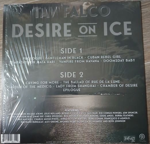 The lineup of featured players on Desire on Ice is impressive. The sessions were anchored by the members of Falco’s current touring band, Panther Burns: guitarist Mario Monterosso, bassist Giuseppe Sangirardi, and drummer Walter Brunetti. The guests include Ann Magnuson, Nicole Atkins, Jolie Holland, Bobby Gillespie, Pete Molinari, Kid Congo Powers, Jon Spencer, Rev. Horton Heat, Jimmy Rip, Chris Spedding, Boz Boorer, Richard Barone, Eddie Angel, Bubba Feathers, Chris Maxwell, Charlie Musselwhite, Mirko Dettori, Kai Eric, Rene Coman, Bertrand Burgulat, Alex Greene, Michael Perry Allen, Jim Sclavunos, and Ross Johnson, among others. Memphis writer and longtime Panther Burns confidante Robert Gordon has contributed new liner notes for the release.”