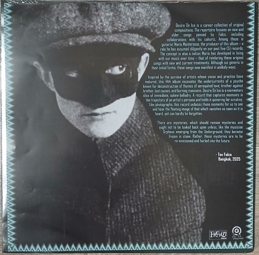 “Desire On Ice is a career collection of original compositions. The repertoire focuses on new and older songs penned by Falco, including collaborations with his cohorts. Among those is guitarist Mario Monterasso, the producer of this album-a role he has assumed diligently on our past five (5) records. The concept is also a notion Maria has developed in living with our music over time-that of rendering these original songs with new and current treatments. Although sui generis in their initial forms, these songs now manifest in unlikely ways.