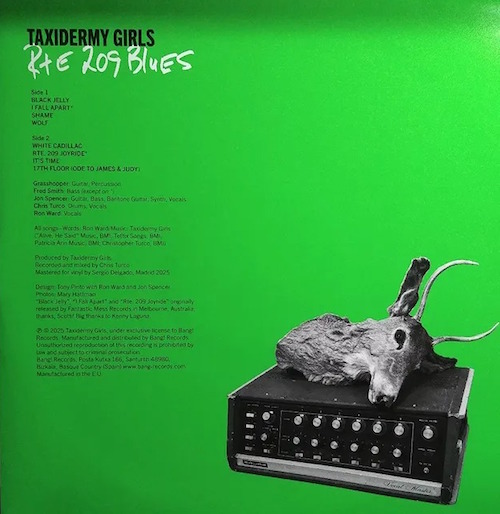 “Get ready for the rawest, dirtiest rock NYC has to offer! Taxidermy Girls, a band featuring legendary talents from Jon Spencer Blues Explosion, Television, Mercury Rev, Speedball Baby, and Five Dollar Priest, is back with a new LP that will blow you away. Rte 209 Blues delivers gritty, powerful sound straight from the streets of New York City — pure, unfiltered, and full of that authentic underground energy. Once known as Taxi Girls, this band has evolved but still carries that rebellious attitude and raw edge that make them stand out. From gritty riffs to catchy melodies, each track is a trip through NYC’s underground scene, where dirty, honest rock reigns supreme. Don’t miss out on this release — a record that proves the spirit of NYC’s rock scene is alive and kicking stronger than ever.”
