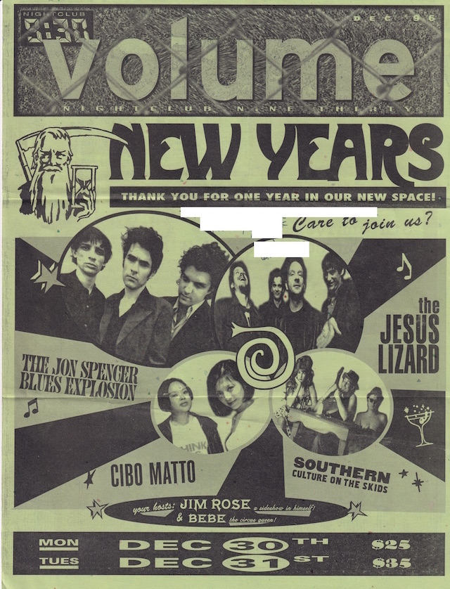 The Jon Spencer Blues Explosion sets at 9:30 Club, Washington, DC, US with Cibo Matto, The Jesus Lizard and Southern Culture on The Skids on 30 and 31 December 1996.