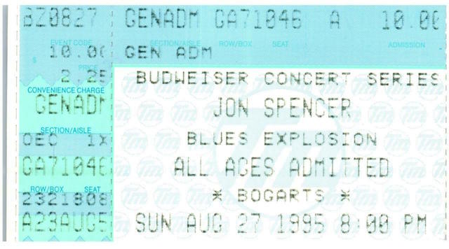 The Jon Spencer Blues Explosion show at Bogart’s, Cincinatti, OH, US with Demolition Doll Rolls on 28 November 1995.