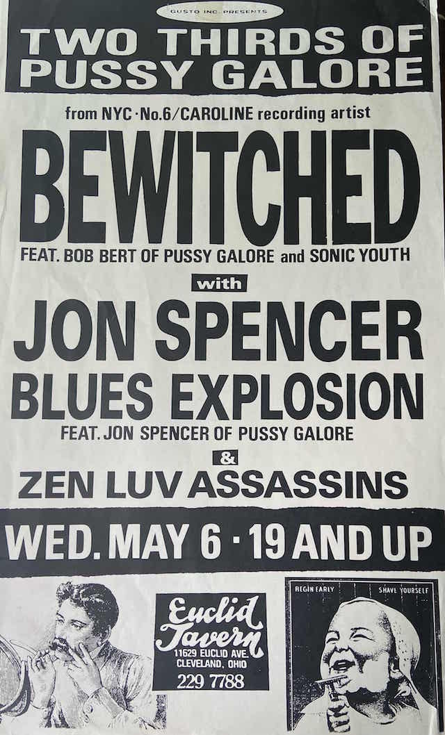 The Jon Spencer Blues Explosion show at Euclid Tavern, 11625 Euclid Avenue, Cleveland, OH 44106, US on 28 October 1992 with Bewitched and Zen Luv Assassins.