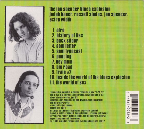 | Writers: Spencer/Explosion (Copyright Control) Recorded: Memphis at Easley Recording, Nov 23-24 ’92 and in NYC at Waterworks Recording, Jul 30 and Dec 3 ’92. Mixed: Waterworks, Jan ’93. Engineered: Doug Easley and Davis McCain (Memphis) and Jim Waters (NYC). Produced by Jon Spencer. |
