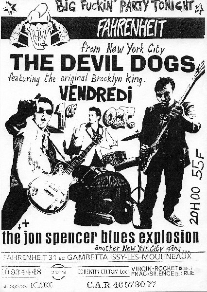 The Jon Spencer Blues Explosion show at Fahrenheit, Issy-les-Moulineaux, France with Devil Dogs on 1 October 1993.
