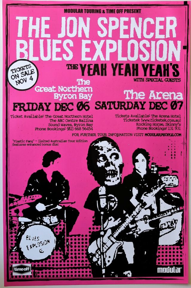 The Jon Spencer Blues Explosion and Yeah Yeah Yeahs tour itinerary for Australian shows 4 – 14 December 2002.