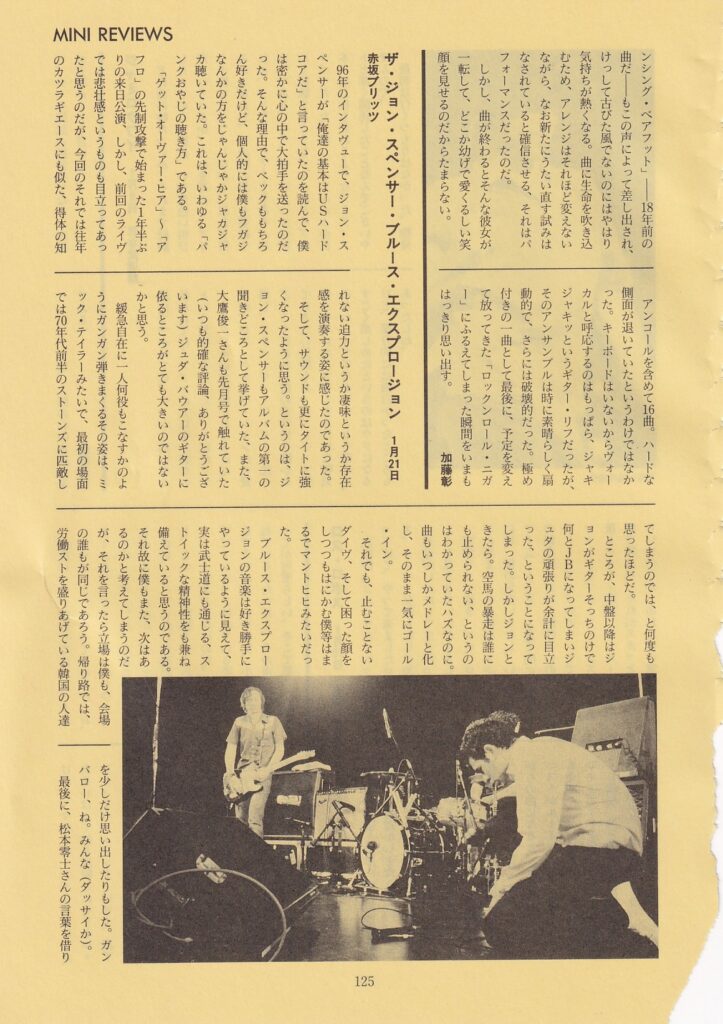 The live review is from Akasaka Blitz, Tokyo, Japan most likely to be 20 January 1997 as in the footage broadcast on MTV from the 21 January 1997 show Jon Spencer is wearing a dark shirt. |