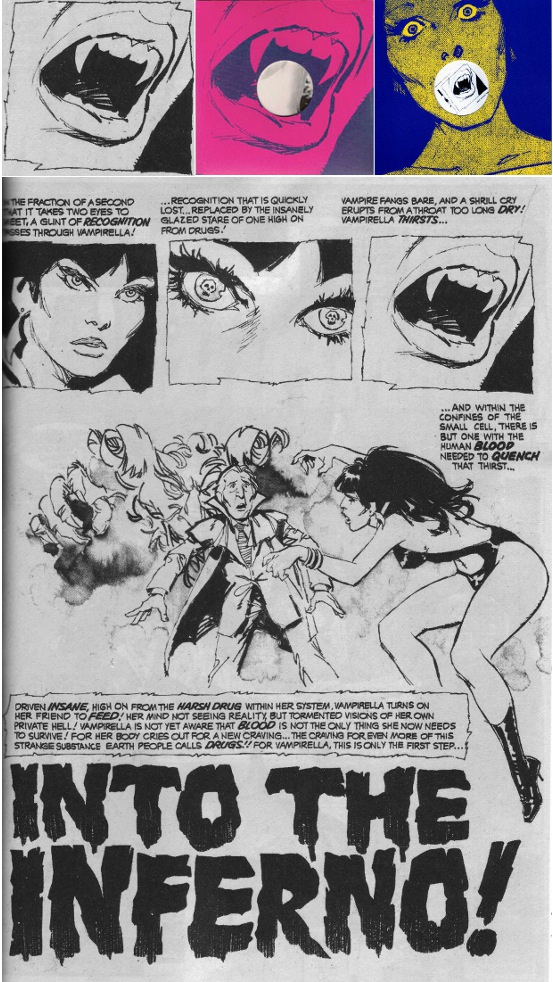 | This is a page from a comic book showing the image used on the cover of She Said and the inner-sleeve of the vinyl and ‘Fang Pack’ editions of Plastic Fang. |