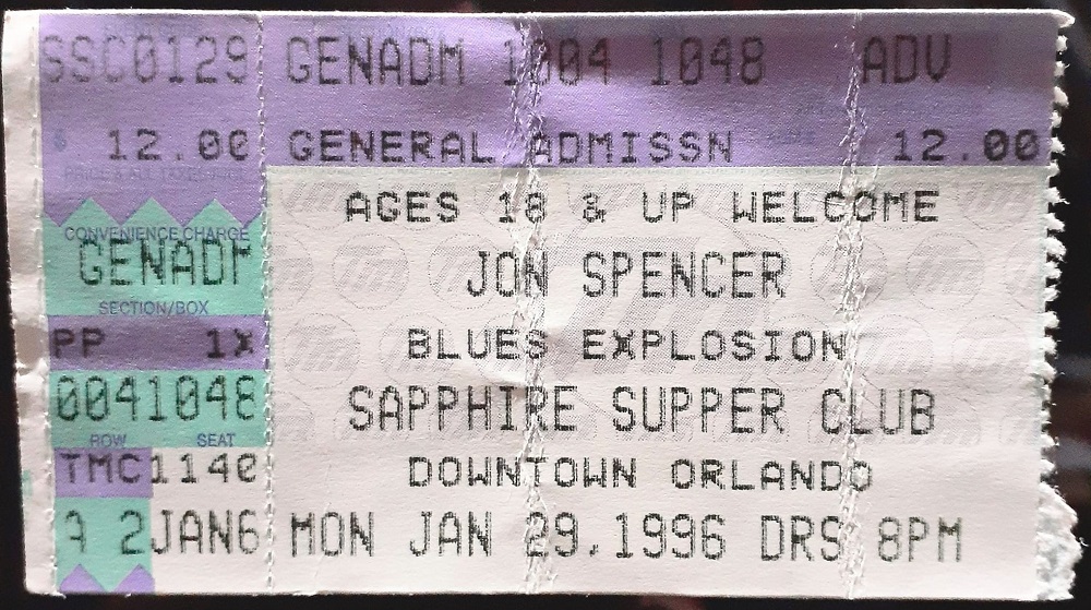 The Jon Spencer Blues Explosion show at Sapphire Supper Club, Orlando, FL, US with Demolition Doll Rods and R.L.Burnside on 29 January 1996.