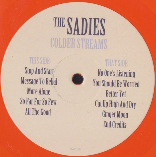 | The Sadies – Colder Streams album, orange vinyl (exclusive to Canada), also available on CD, blue vinyl and black vinyl.