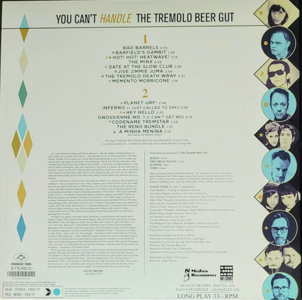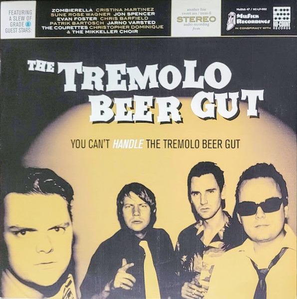 US Gold vinyl edition of You Can’t Handle The Tremolo Beer Gut features a slew of “Grade A Guest Stars” including Cristina Martinez and Jon Spencer on the track Hey Hello.Released in Europe by Crunchy Frog on CD and black vinyl (pre-orders include a free draft beer at Whammy Bay) and in the US by MuSick Recordings / No Count on CD, gold vinyl, black vinyl and cassette (pre-orders include a sticker and button).